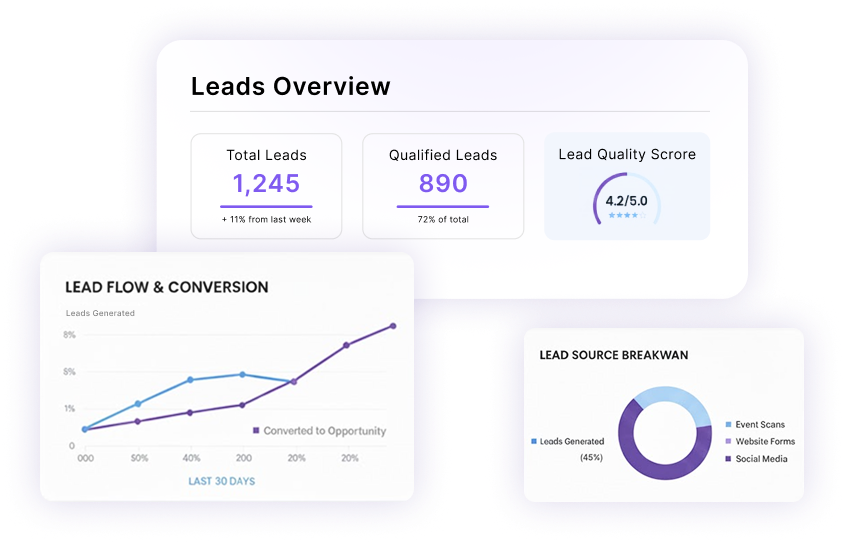 Power your in-person events, trade shows, and conferences with seamless check-in, advanced lead capture, AI enrichment, and onsite tools that keep everything moving and measurable. From the show floor to the sales pipeline — Leadature transforms every interaction into enriched, scored, CRM-ready pipeline.